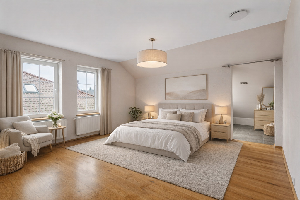 - Trzy ustawne sypialnie, w tym główna z prywatną garderobą